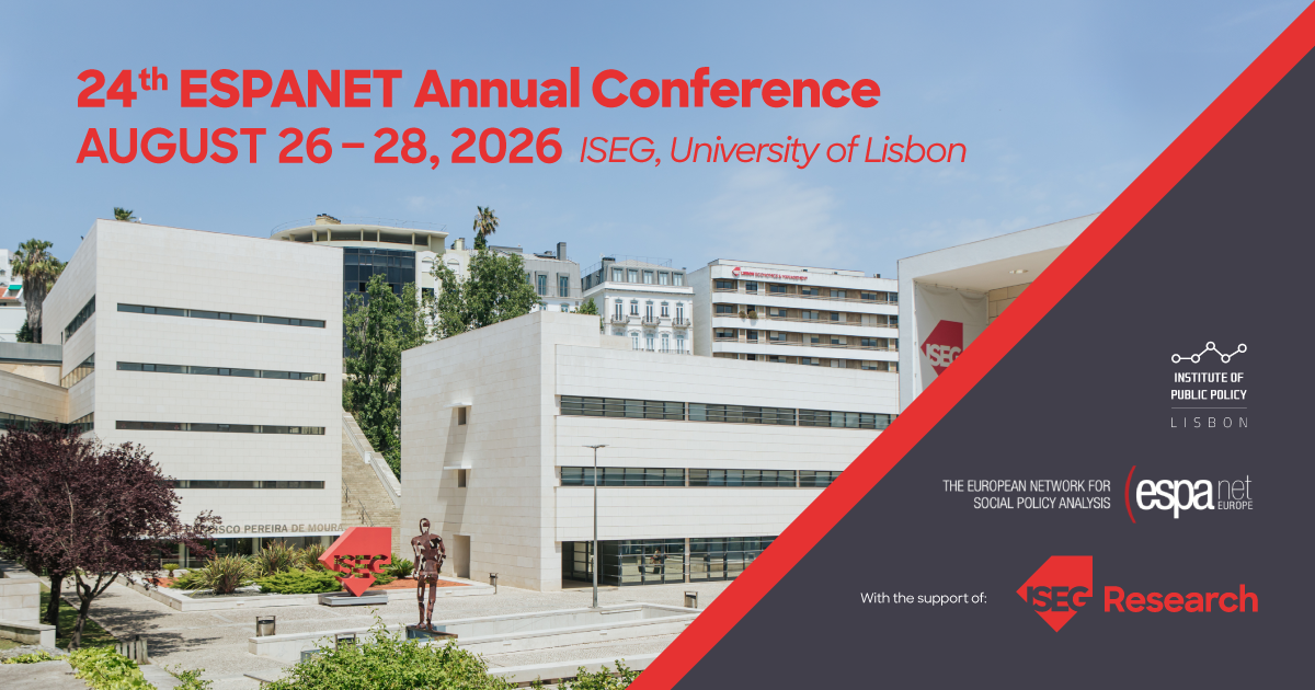 ESPAnet 2026 will be held in Lisbon, August 26-28, at the Lisbon School of Economics & Management (ISEG), University of LIsbon. The conference is organised by the Institute of Public Policy – Lisbon (IPP) (link: https://www.ipp-jcs.org/en/home-page_en/), with the support of ISEG Research in Economics and Management (ISEG Research) (Link: https://www.iseg.ulisboa.pt/en/investigation/).
